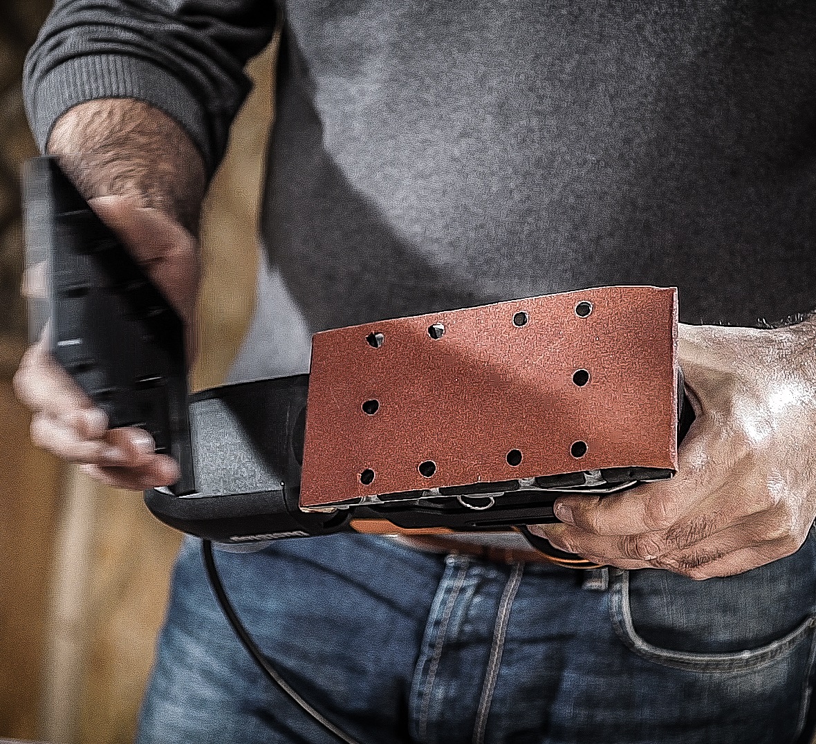 Διαθέτει ορθογώνια βάση λείανσης και είναι ιδανικό για λείανση μεγάλων επιφανειών.