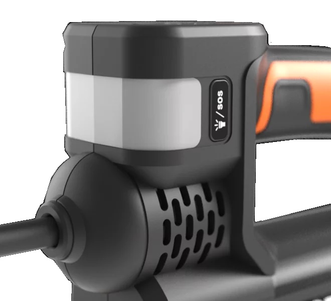 Λειτουργεί ως ισχυρό κομπρεσέρ αέρος, ελεκτής πίεσης ελαστικών, φως εργασίας και φάρος για σήμα έκτακτης ανάγκης.