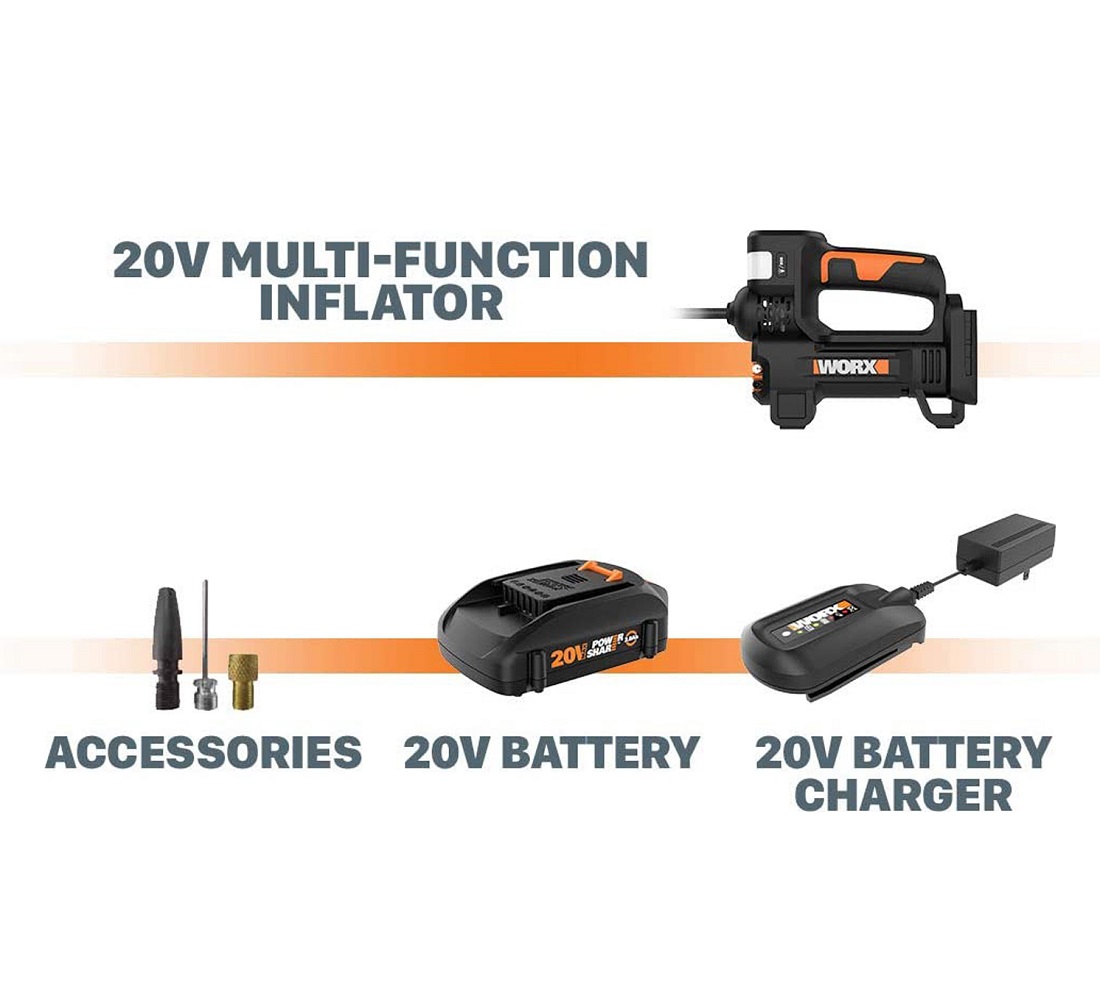 Το Worx WX092 είναι ένα συμπαγές και ελαφρύ κομπρεσέρ αέρος, υψηλής πίεσης 20 V αλλά και ένα πολυχρηστικό εργαλείο 4 λειτουργιών σε 1.
