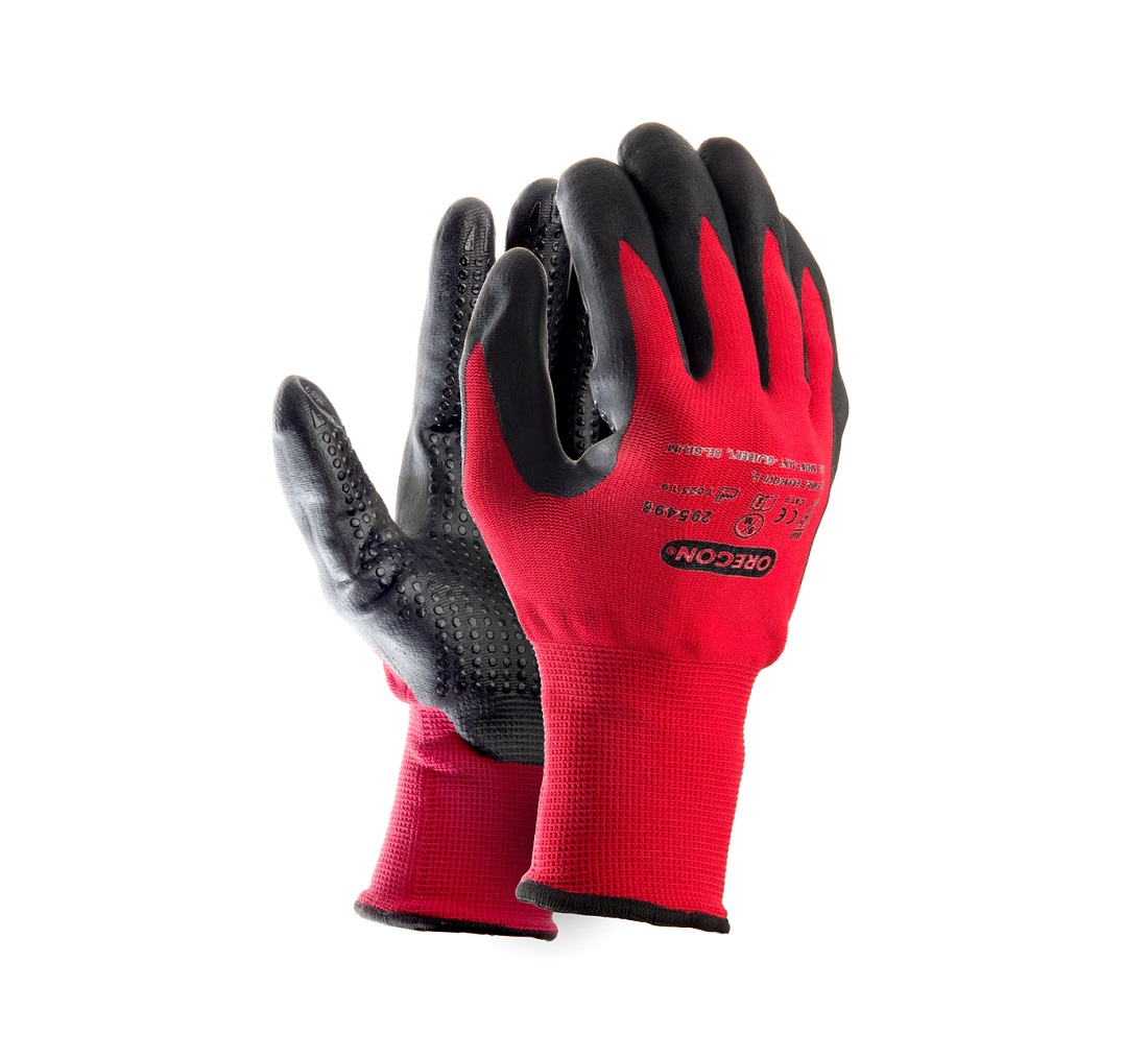 Κατασκευασμένα από κόκκινο, άνετο, ελαστικό νάιλον ύφασμα που αναπνέει, με τέντωμα 4 κατευθύνσεων και με επίστρωση νιτριλίου στην παλάμη & τα δάκτυλα.