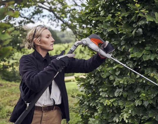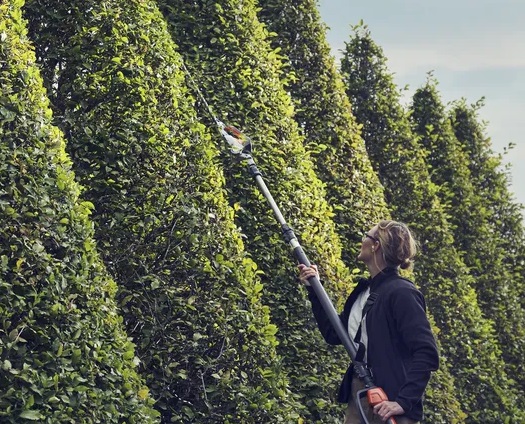 The Husqvarna 520iHT4 is a telescopic hedge trimmer that can reach up to 4.5 meters and is designed for professional use.
