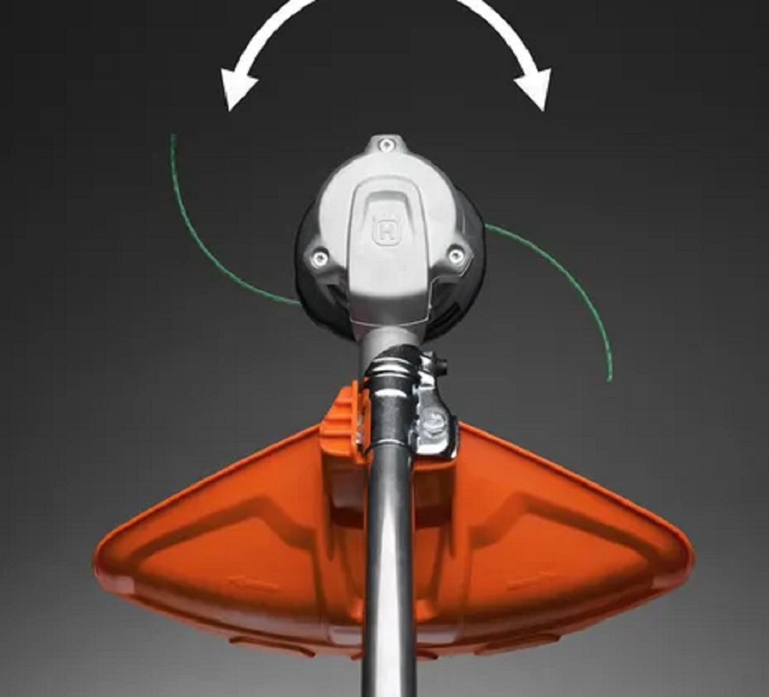 The rotational direction of the trimmer head can be changed for less grass on walk ways.