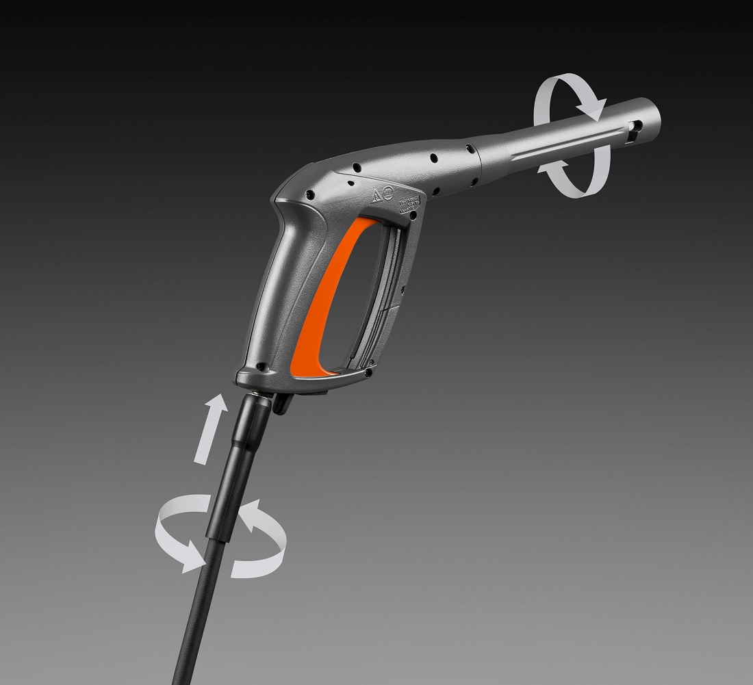 • The spray chute features dual-swivel and quick-adjust functions for hose, nozzles and accessories - to maximize efficiency and convenience.