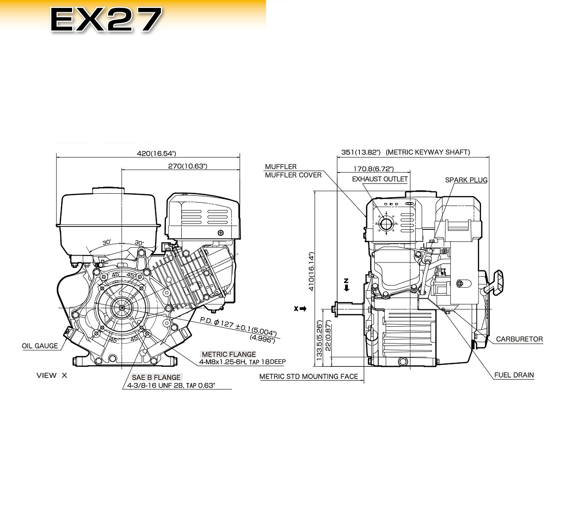 The EX27DUS motor is manufactured by Robin and is suitable for a wide range of light duty applications.
