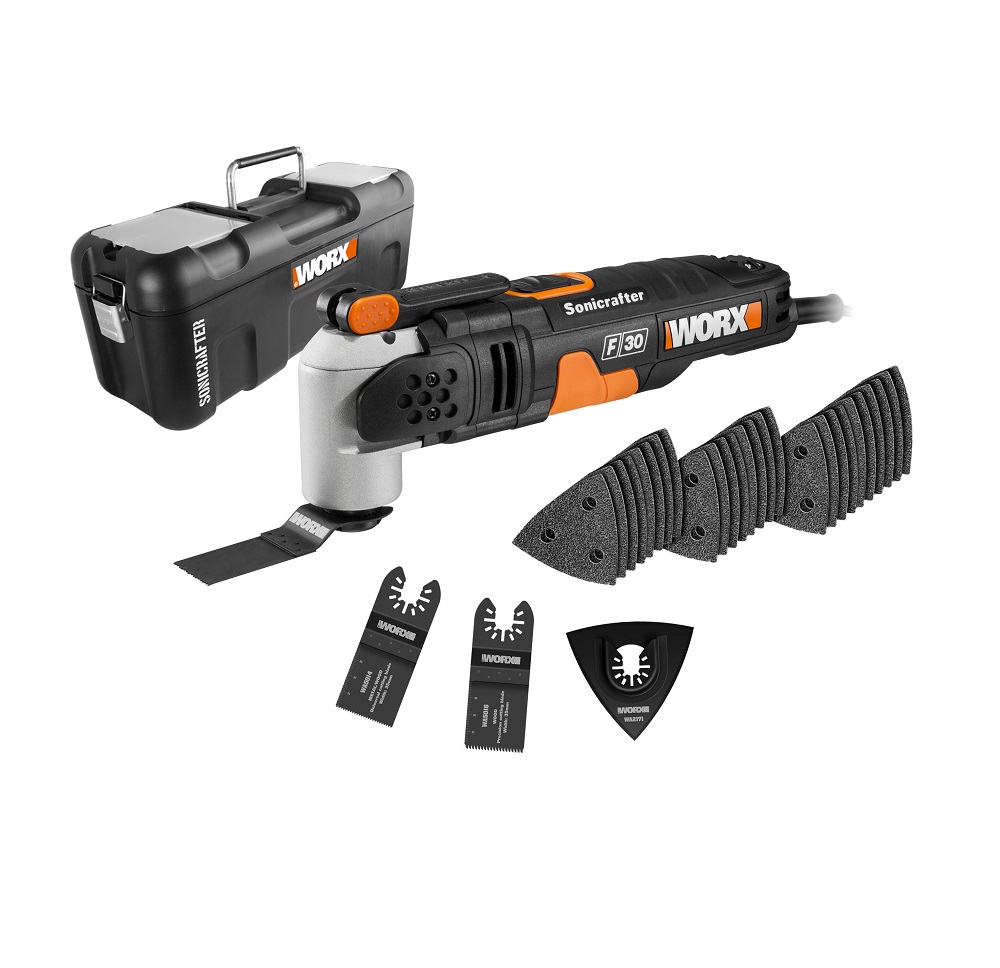 • Ultra-versatile tool for cutting, sawing, scraping, sanding & more.